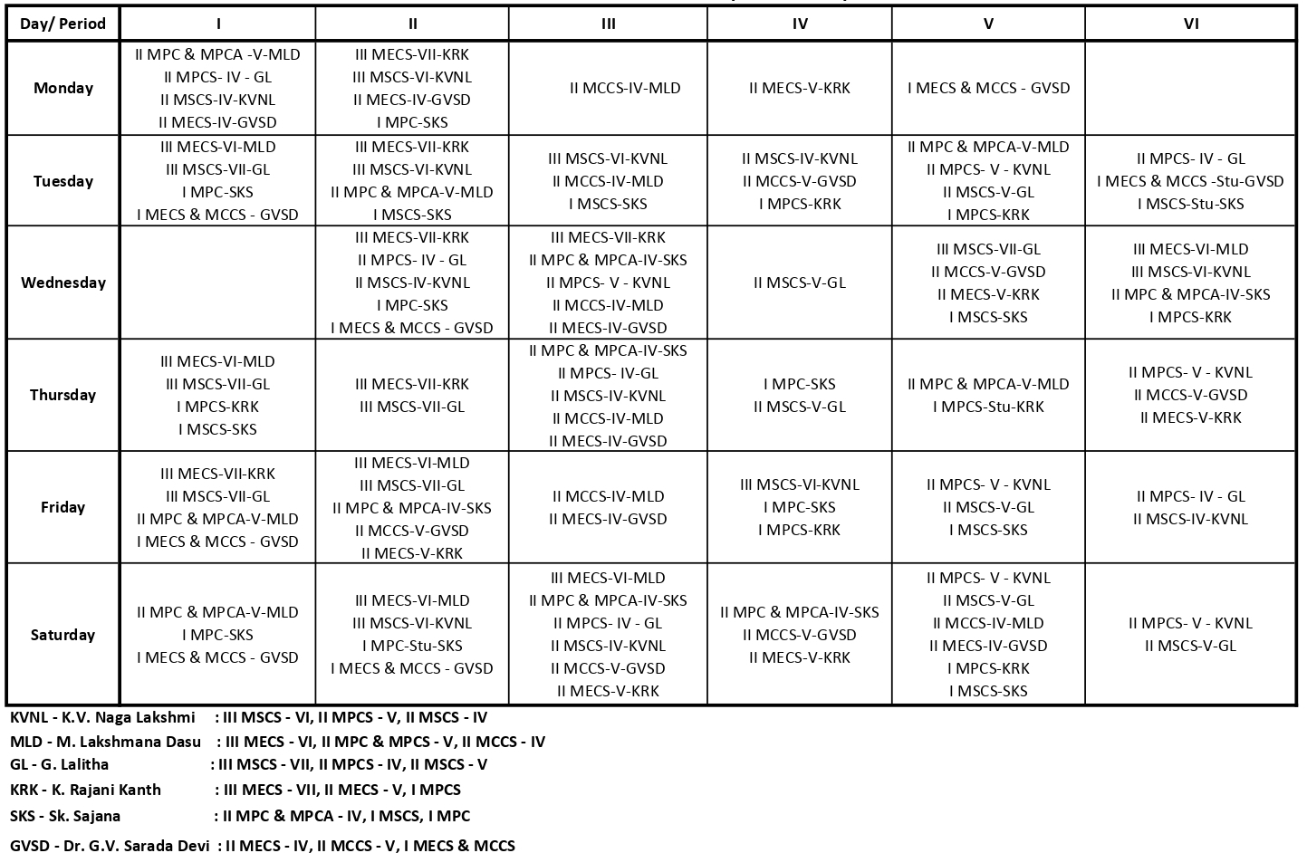 Department of Mathematics : Time Table